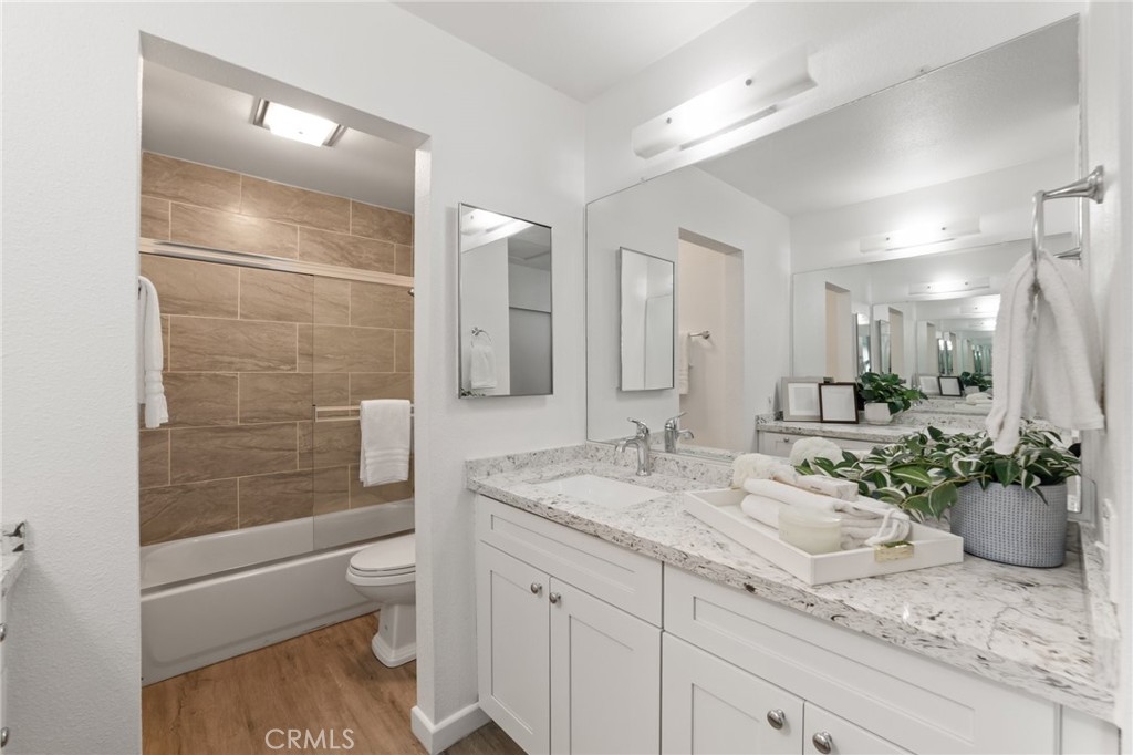 SINGLE LEVEL, OWNED SOLAR, BEAUTIFULLY REMODELED & MORE! Welcome to 1025 Ardmore Circle, a beautifully maintained and thoughtfully remodeled home nestled in the charming Ardmore Terrace community--offering comfort, style, and carefree living. Step inside to discover a well-designed floor plan enhanced by a soft, neutral color palette, durable laminate plank flooring, and cozy carpet. The inviting family room boasts soaring ceilings, abundant natural light, and a warm fireplace--perfect for relaxing or entertaining. The remodeled kitchen is a true highlight, featuring timeless white shaker cabinets, sleek quartz countertops, stainless steel appliances--including a freestanding gas range, microwave, and dishwasher--and a layout that opens effortlessly to the dining and family rooms. This desirable great room concept creates an ideal space for both everyday living and entertaining. French doors lead to a spacious private patio, extending your living area outdoors--perfect for al fresco dining or enjoying a quiet morning coffee. The serene primary suite offers a peaceful retreat with its own set of French doors to the patio, a well-appointed ensuite bathroom with a vanity area, private water closet, and a tub/shower combo. Two additional bedrooms and a full secondary bathroom with a walk-in shower provide comfortable accommodations for family or guests. A convenient interior laundry closet adds to the home's practicality. Additional standout features include a FULLY OWNED SOLAR SYSTEM for energy efficiency and cost savings, and an attached two-car garage with direct access for added convenience. As a resident of Ardmore Terrace, you'll enjoy fantastic community amenities such as a swimming pool, spa, clubhouse, and RV parking area. The HOA covers water, sewer, and trash services for truly hassle-free living. Located just minutes from historic downtown Redlands, you'll love the easy access to vibrant nightlife, unique shops, and diverse dining options. Welcome Home!